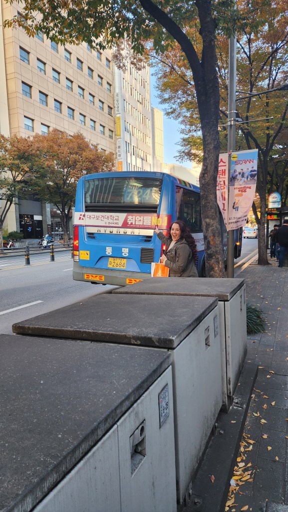 I was in shock while Laura started trying to take pictures and then proceeded to scream at me to get on the bus, telling me we’d figure a different route later. I’m scrambling to find my face mask (we went during November 2022 so it was currently still mandatory to wear them on public transport) and my T-money card to pay my fare, literally unable to think or move from the shock of the moment.