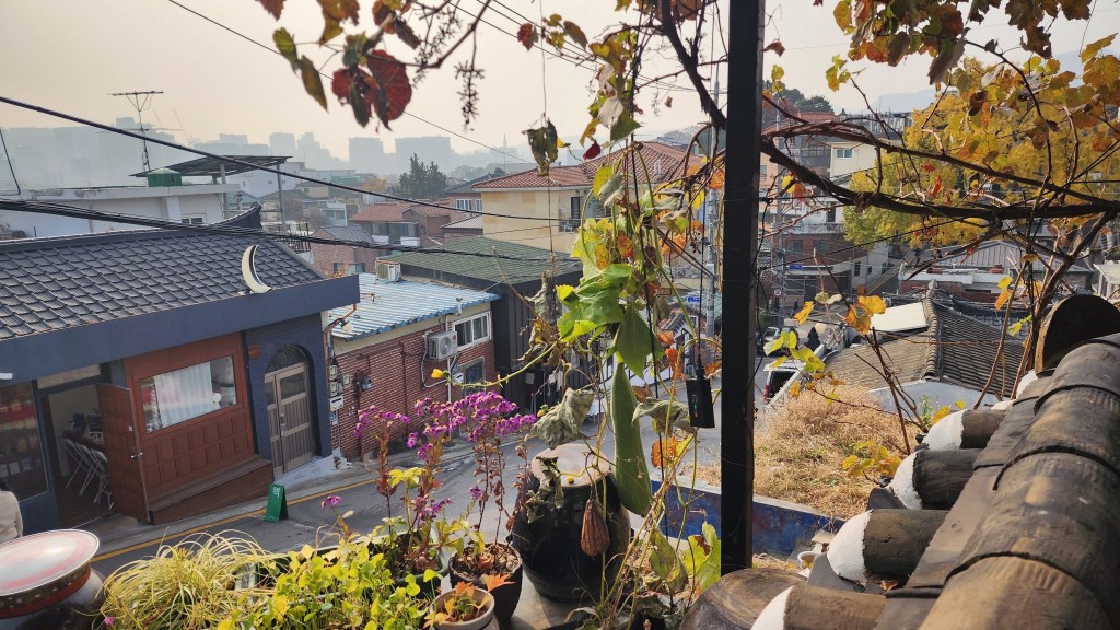 - The balcony/garden: we didn’t spend a ton of time here, but waking up in the morning to overlooking Seoul neighborhoods and hills from this POV was an amazing start to our day. They had zucchini growing from a few planters and the vines just added so much charm to the structure. This is where they were making kimchi when we arrived.