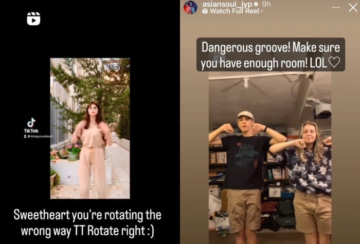 • Groove Back‘ controversy – JYP took to his Instagram to repost fans that were partaking in his challenge for the song he dropped in 2022… but adding unnecessary and sassy criticism as if they were auditioning for his company or approval. Who does that?!! Not to mention they were mostly international fans…